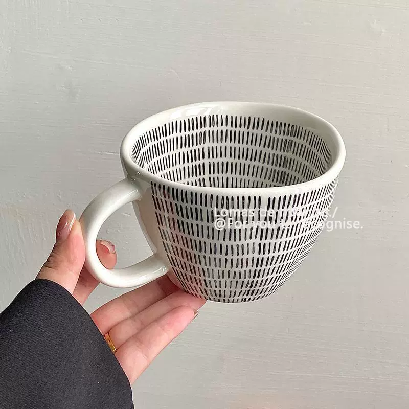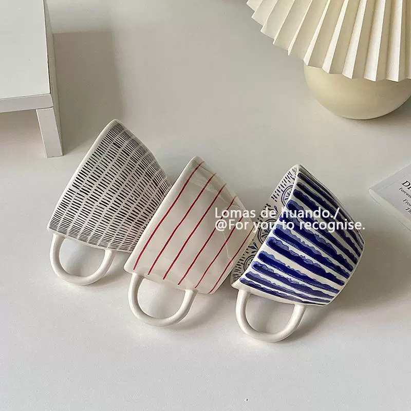 This Nordic-style retro ceramic mug features a unique handmade design with irregular patterns. Available in red circular, blue striped, and black vertical stripe variants, each approximately 340ml. Perfect for coffee, milk, yogurt, or oatmeal breakfasts. Crafted from high-quality ceramic, it’s ideal for daily use or as a thoughtful gift. Designed for adults, this mug is made in Mainland China and is suitable for cross-border export.