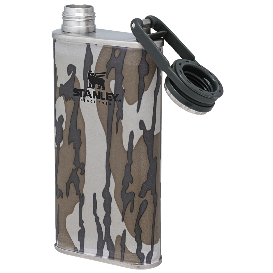 The Stanley Classic Wide Mouth Flask is the ultimate companion for outdoor enthusiasts. Featuring Mossy Oak® and Blaze Orange camouflage, this 0.24L flask is made from durable, BPA-free 18/8 stainless steel. Its wide-mouth design allows easy filling without a funnel, while the leak-proof lid ensures secure transport. The convenient tethered cap stays attached, so you never lose it during hunting or fishing trips. Compact and lightweight at just 0.37 lbs, it fits easily in a backpack or boat bag. Perfect for blinds, boats, or any adventure.