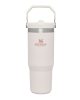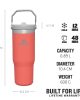 Stay refreshed with the Stanley IceFlow Flip Straw Tumbler. This 0.89L tumbler keeps drinks cold for up to 12 hours and iced for 48 hours, thanks to double-wall vacuum insulation. Designed for convenience, it features a leak-proof built-in straw, foldable handle, and fits most car and bike cup holders. Made from 18/8 stainless steel, it’s BPA-free, dishwasher safe, and comes in five stylish colors: Pink Quartz, Cedar, Guava, Iris, and Carbon. Backed by a lifetime warranty, it’s perfect for active lifestyles. Fast shipping and 30-day returns available.