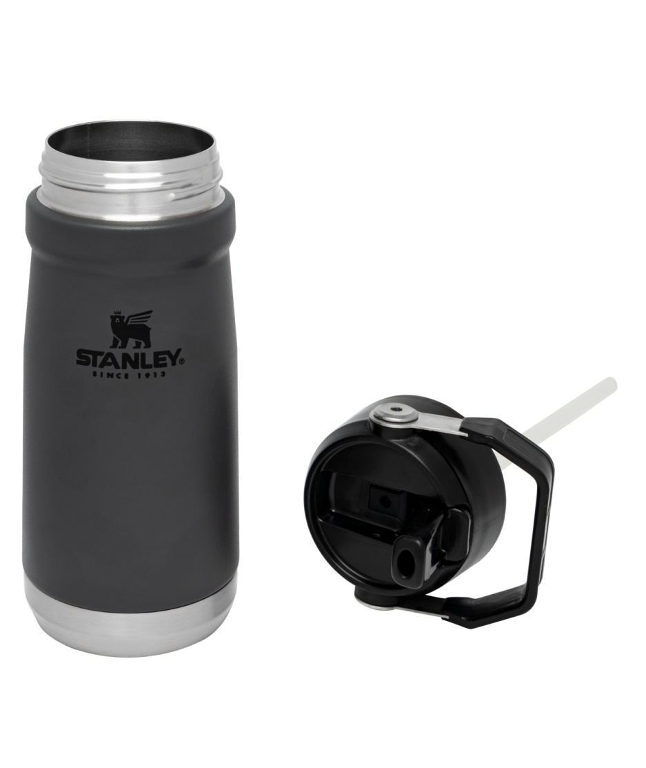 Stay cool and hydrated in style with the Stanley IceFlow Flip Straw Water Bottle. Ideal for outdoor adventures or daily use, this 0.5L bottle features a leakproof flip straw lid and double-wall vacuum insulation that keeps drinks cold for up to 24 hours. Made from durable 18/8 stainless steel, it’s BPA-free, dishwasher safe, and fits most car cup holders. The ergonomic design includes a rotating handle for easy transport. Available in Carbon and Polar colors.
