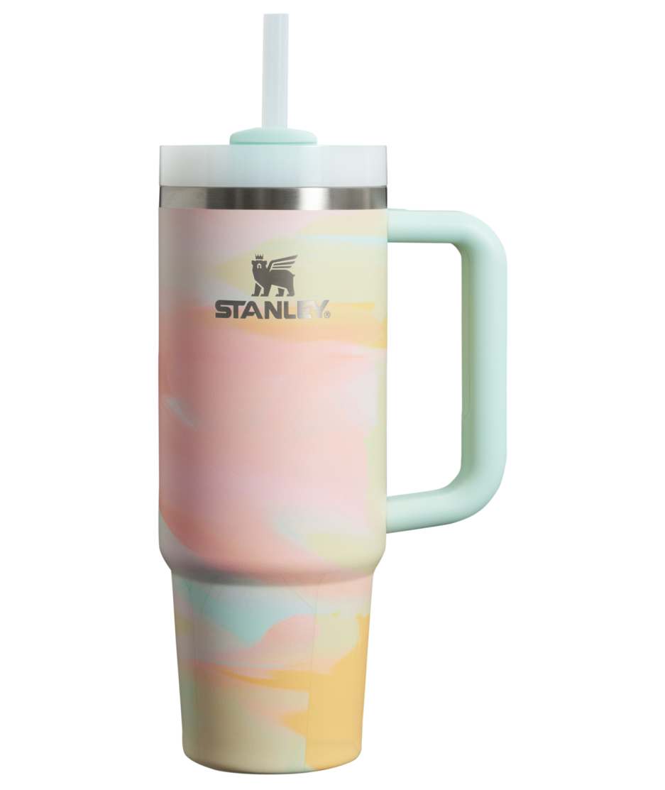 Start the new year fresh with the Stanley Quencher H2.0 FlowState Tumbler in appealing pastel shades. This double-walled vacuum-insulated tumbler keeps drinks cold all day, while its slim base fits perfectly in car cup holders. The advanced FlowState lid rotates to three positions: straw opening, drinking spout, and full-cover top that resists spills. Made from recycled 18/8 stainless steel, BPA-free, and dishwasher safe. Includes reusable straw and convenient handle. Perfect for picnics, commuting, or yoga sessions.
