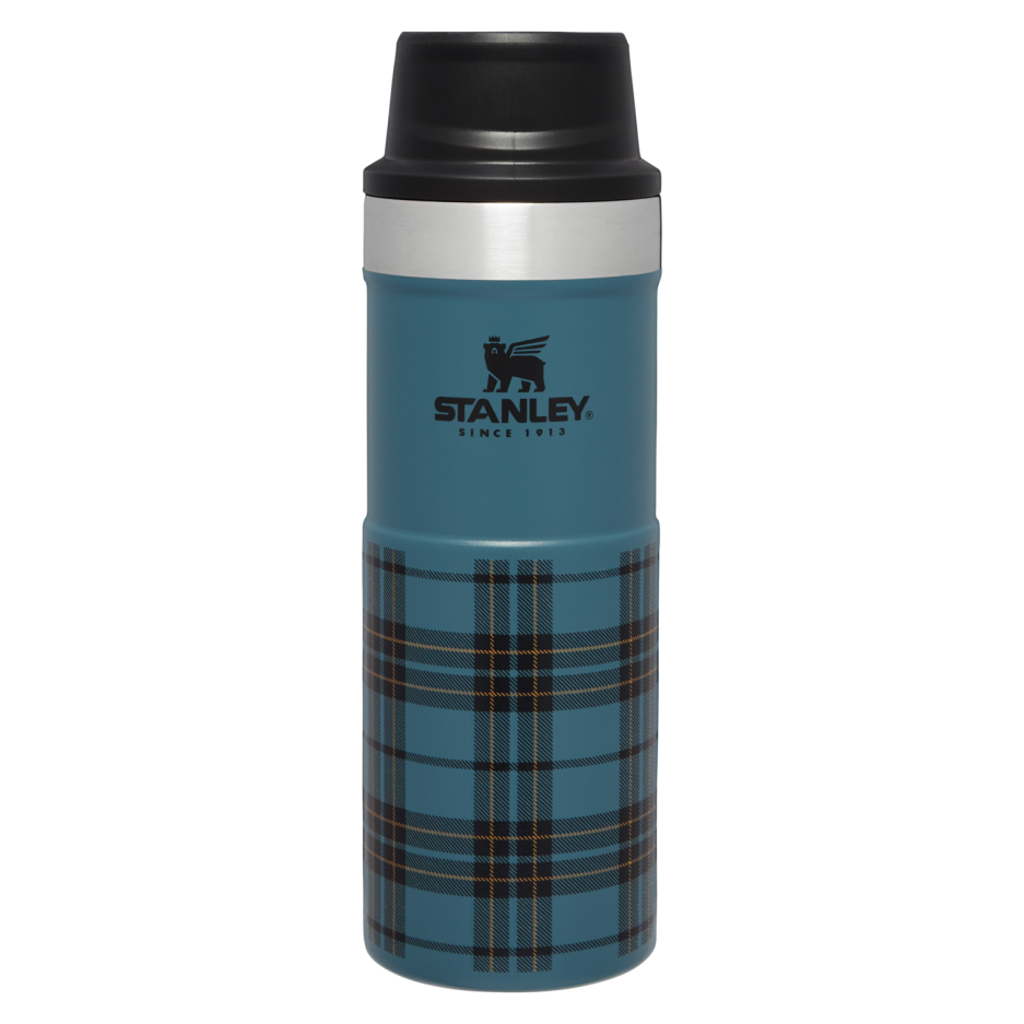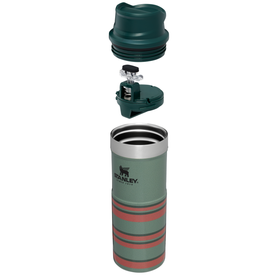 Enjoy your coffee, tea, or favorite hot beverage with the Stanley Vintage Loom Travel Mug in limited edition Trigger Action design. Inspired by warm, freshly woven fabrics, this mug blends classic style with modern functionality for a cozy yet fresh vibe. Perfect for work or weekend trips, the trigger-action lid allows one-handed drinking at the push of a button. Leak-proof system prevents spills and drips. Fits most car cup holders and keeps drinks hot for hours with double-wall vacuum insulation.