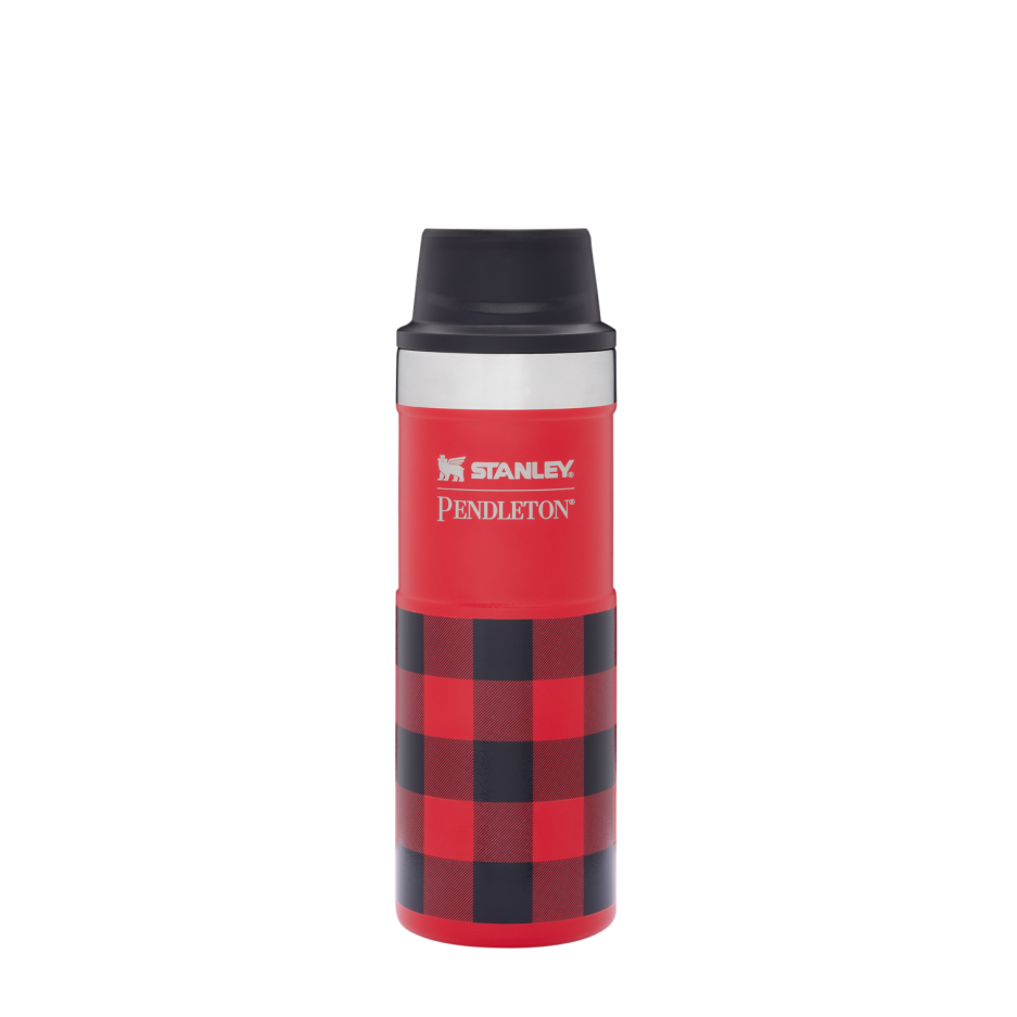 Discover the Stanley x Pendleton Travel Mug with a bold red and black plaid pattern. Built from 90% recycled 18/8 stainless steel, this durable mug features double-wall vacuum insulation to keep drinks hot or cold for hours. The leak-proof, trigger-action lid allows for easy one-handed drinking, making it perfect for outdoor adventures or daily use. Ideal for coffee, tea, and more, it’s also easy to clean and dishwasher safe.
